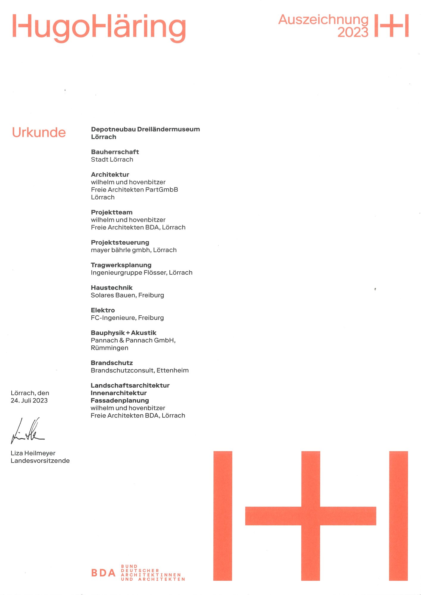 Der Neubau des Depots 3L-Museum ist mit Nutzungsbereichen zur Lagerung von Kulturgütern, Verwaltung / Sammlungsmanagement, Vorbereitung von Ausstellungen und Restaurierung vorgesehen. Das Raumprogramm wird in einem zweigeschossigen Gebäude auf eine Grundfläche von ca. 42 × 34 Metern untergebracht. Hohe konservatorische und sicherheitstechnische Anforderungen bedingen einen geschlossenen Massivbau, lediglich die Büros und Allgemeinflächen werden natürlich belichtet und belüftet. Innerhalb des neu geschaffenen Gewerbegebiets in Lörrach platziert, schafft der Bau einen neuen Massstab und gestalterischen Anker als prägnanter, plastischer und monolithischer Körper.