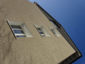 In einem Zeilenbaugebiet der 60er Jahre wir ein Mehrfamilienhaus energetisch nach neusten Standards saniert. Die grossen neuen Balkone schaffen den Bewohnern neue Lebensqualität. Gestaltung und Details, Farbigkeit und Putzstruktur nehmen Themen der 50er und 60er Jahre auf und übertragen sie in eine zeitgenössische Erscheinung.