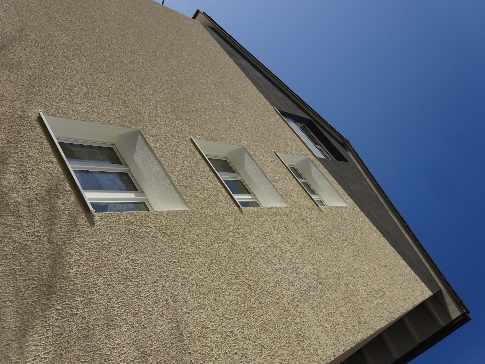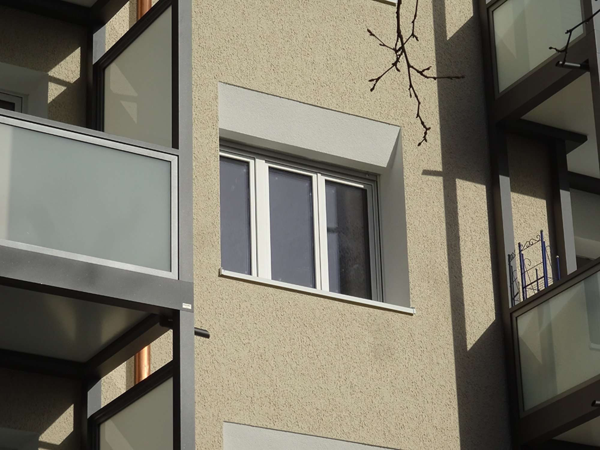In einem Zeilenbaugebiet der 60er Jahre wir ein Mehrfamilienhaus energetisch nach neusten Standards saniert. Die grossen neuen Balkone schaffen den Bewohnern neue Lebensqualität. Gestaltung und Details, Farbigkeit und Putzstruktur nehmen Themen der 50er und 60er Jahre auf und übertragen sie in eine zeitgenössische Erscheinung.
