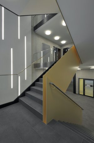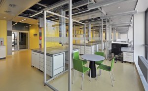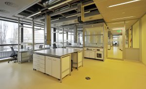 Das Architekturkonzept für den 5-geschossigen Neubau des WKL 693 bietet optimale Einrichtungsbedingungen für eine zeitgemässe Laborgestaltung. Im Grundriss werden zwei Funktionsbereiche aus Labor- und Office L-förmig ineinander gefügt und die Zwischenräume kommunikativ für den Personen- und Warenverkehr vertikal ausgebildet. Die großflächige Fassadenverglasung und die Farbgebung der Innenraumgestaltung schaffen bei jeder Wettersituation einen hellen und freundlichen Lichtton und ermöglichen dem Nutzungskonzept von Teambüros und – laboren mit großen Raumtiefen eine optimale Arbeitsatmosphäre.