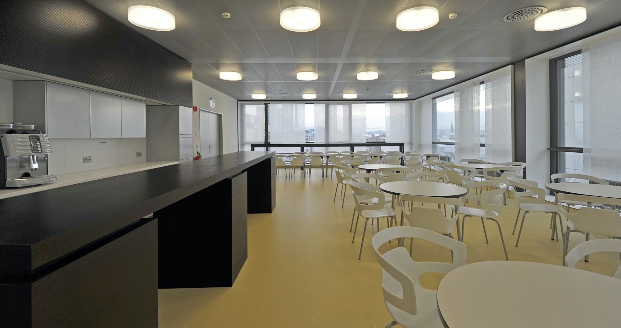 Das Architekturkonzept für den 5-geschossigen Neubau des WKL 693 bietet optimale Einrichtungsbedingungen für eine zeitgemässe Laborgestaltung. Im Grundriss werden zwei Funktionsbereiche aus Labor- und Office L-förmig ineinander gefügt und die Zwischenräume kommunikativ für den Personen- und Warenverkehr vertikal ausgebildet. Die großflächige Fassadenverglasung und die Farbgebung der Innenraumgestaltung schaffen bei jeder Wettersituation einen hellen und freundlichen Lichtton und ermöglichen dem Nutzungskonzept von Teambüros und – laboren mit großen Raumtiefen eine optimale Arbeitsatmosphäre.