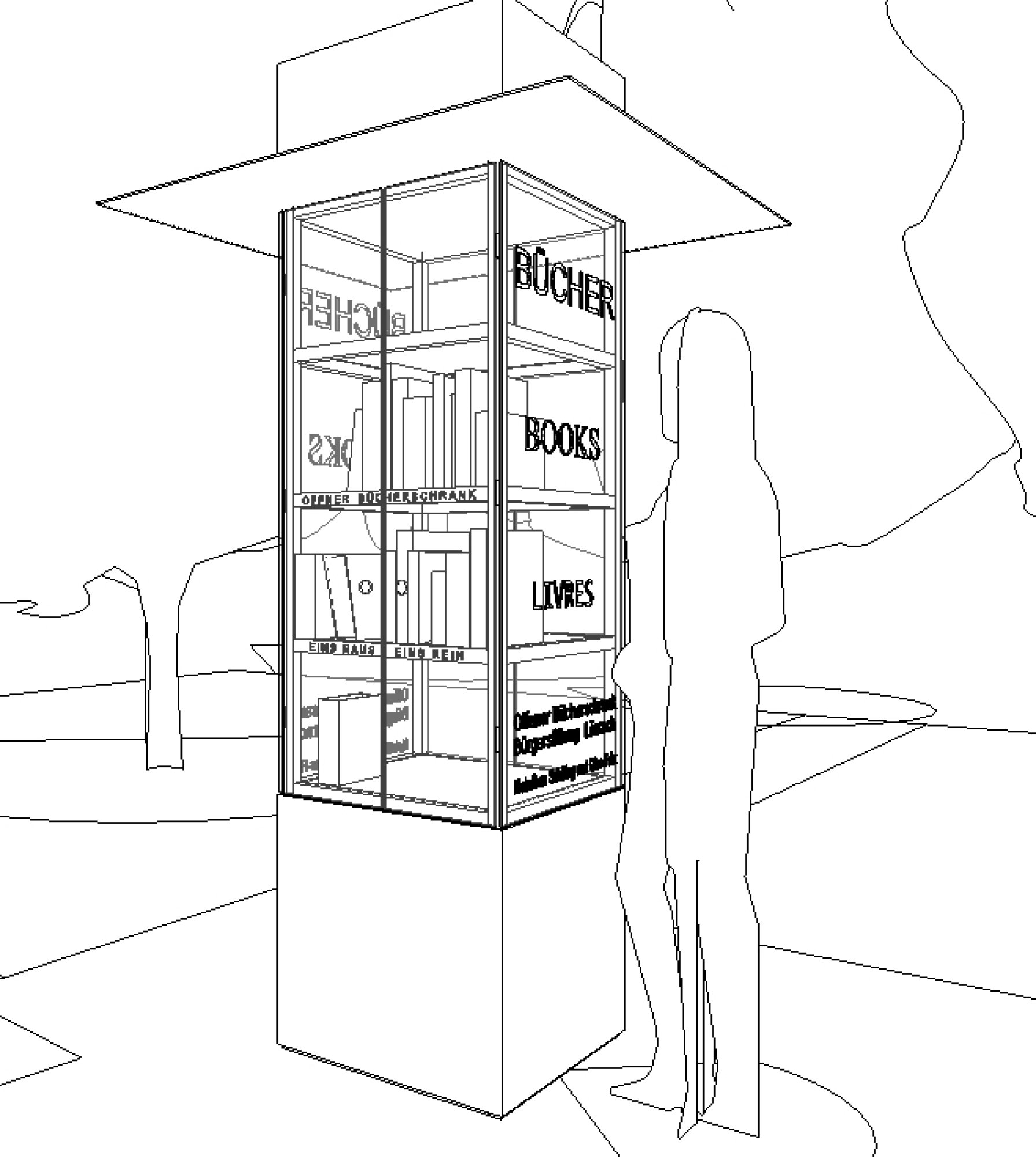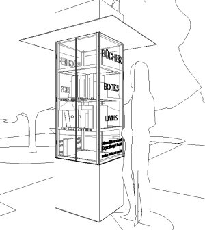 Für die Bürgerstiftung Lörrach haben wir einen öffentlichen Bücherschrank entworfen und zusammen mit Handwerkern realisiert. Zwei von diesen Prototypen mit Rundumverglasung und automatisch schließenden Drehtürchen – wurden in der Stadt aufgestellt. Sie sind bereits zu einer kleinen Institution geworden und werden bestens angenommen.