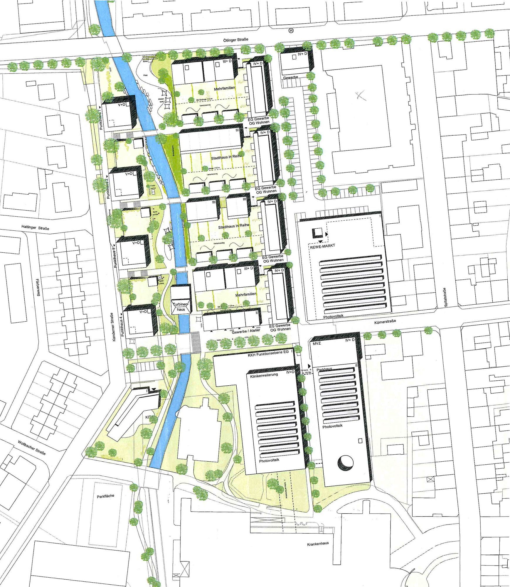 Insgesamt wird ein lebendiges neues Stadtquartier geschaffen, das an der Nahtstelle verschiedener Stadtbereiche die angrenzenden Strukturen aufnimmt und in einem vielfältigen Gemenge verbindet.