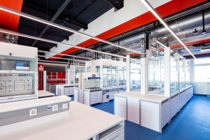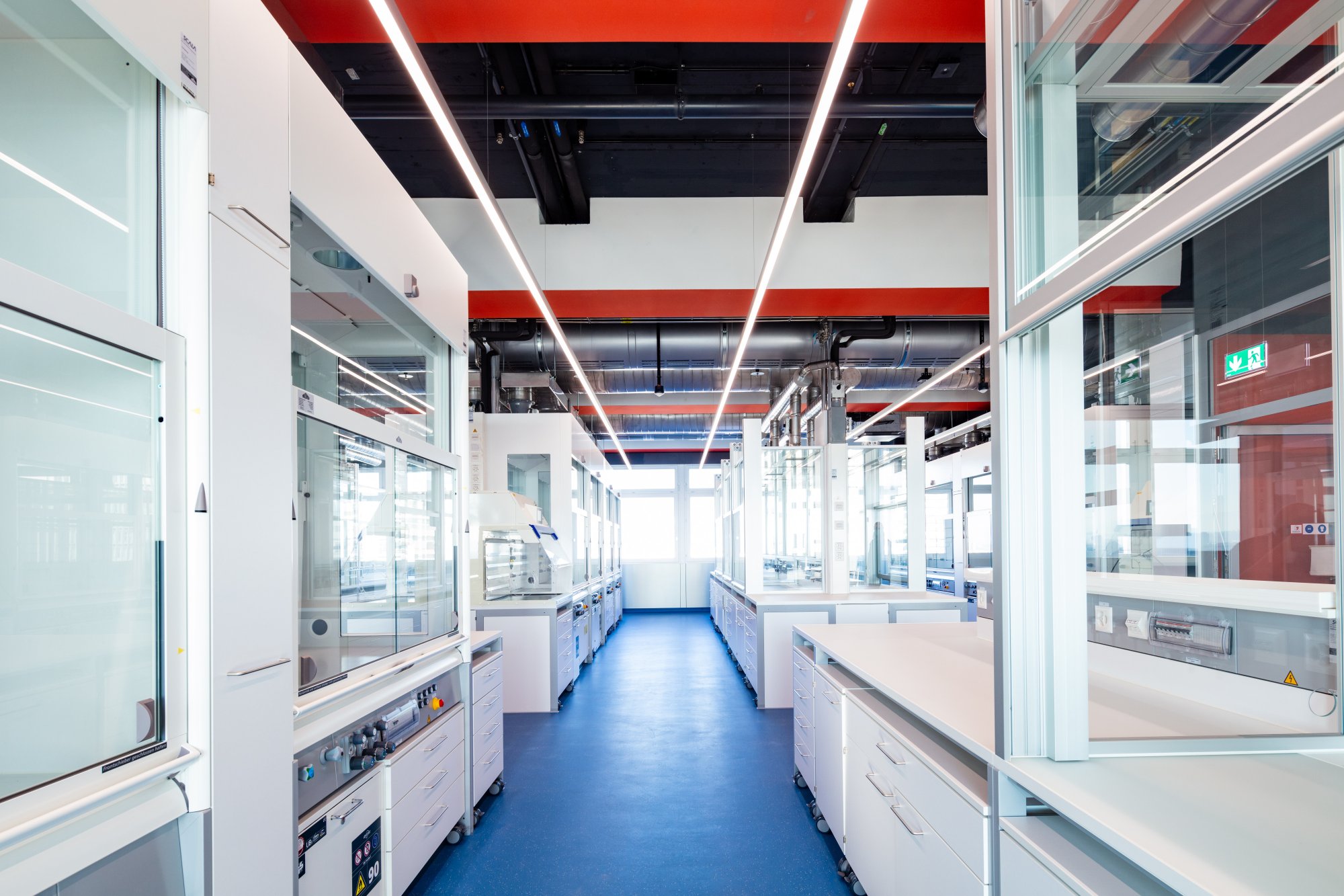 Das Laborhochhaus (60m) ist vollumfänglich saniert worden. Nach Entkernung wurden moderne Labore und Office-Bereiche flexibel in den Obergeschossen eingerichtet wobei im Erdgeschoß eine Austellungsfläche zur Firmenpräsentation entstand. Die komplette Überarbeitung der Fassade erzielt großes energetisches Einsparpotential und gibt dem Gebäude und dem Unternehmen ein neues Gesicht zur Stadt Basel.