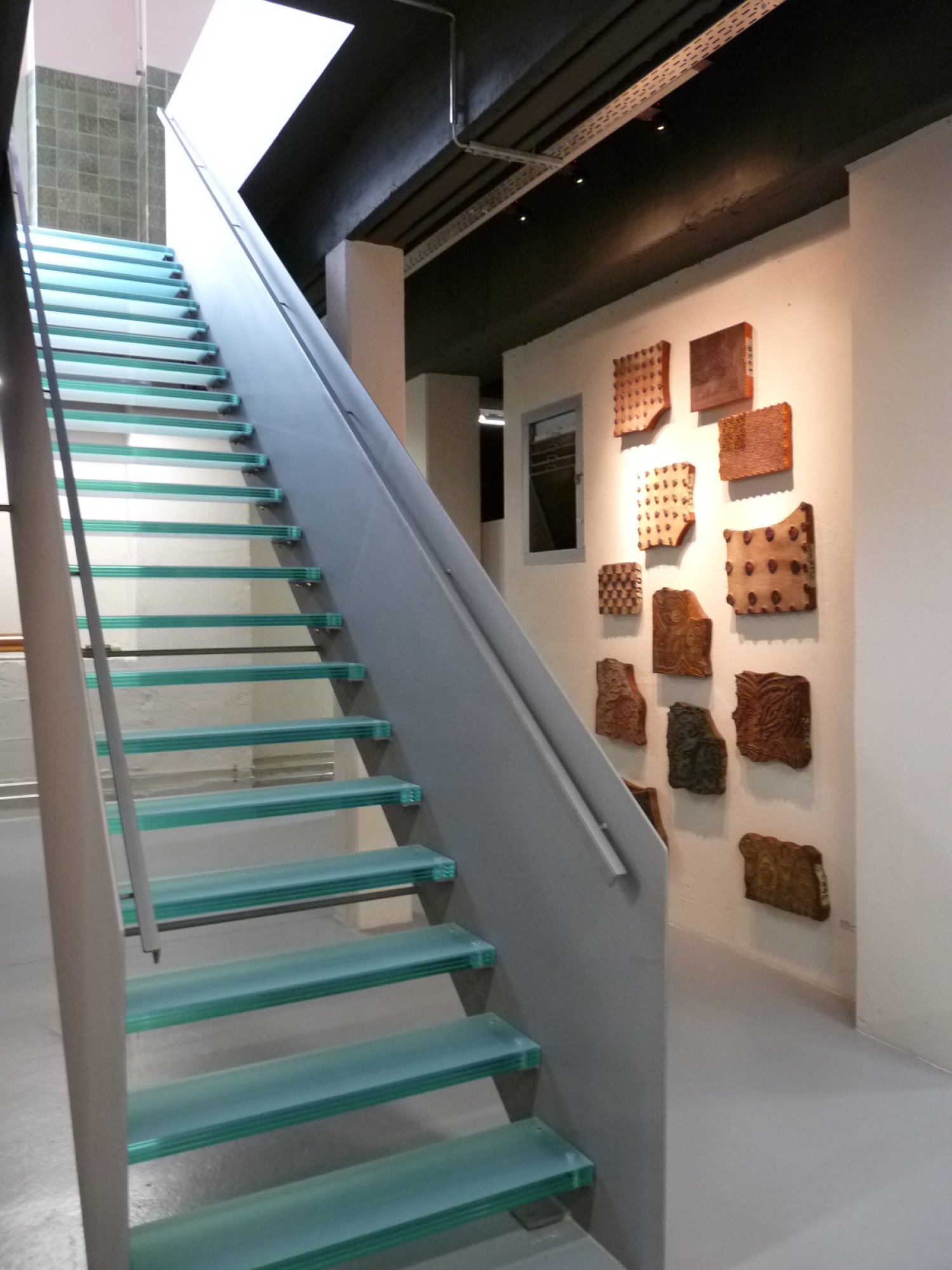 Durch Erhalt wesentlicher Erinnerungsstücke, wie der Kranbahn, der Schaltanlage und Reliquien der ehemaligen Nutzung und durch Einbau neuer architektonischer Bauteile ist ein ästhetisch und funktional überzeugendes Bauwerk das Alt mit Neu verbindet und die wertvollen Exponate an Ihrem Entstehungsort optimal präsentiert. In einer modernen, bordeauxroten Schatzkammer aus feiner Schreinerarbeit sind die wertvollsten Originaltextilmuster vor Tageslicht geschützt aufgestellt. Das Erdgeschoss der Halle verbindet sich durch eine Stahltreppe aus präziser Schlosserarbeit mit dem Untergeschoss. In beiden Geschossen werden in eigens entworfenen Vitrinen, Regalen und Schaukästen die wertvolle Stoffe und Druckstöcke der jeweiligen Jahrzehnte präsentiert. Die Fassade wurde rückgebaut und mit modernen Elementen wie Rampen, Treppen und neuem Zugang aufgewertet.