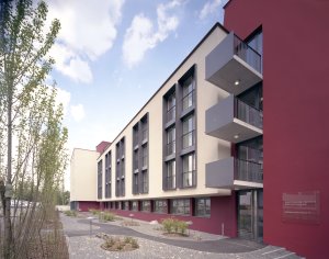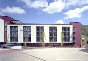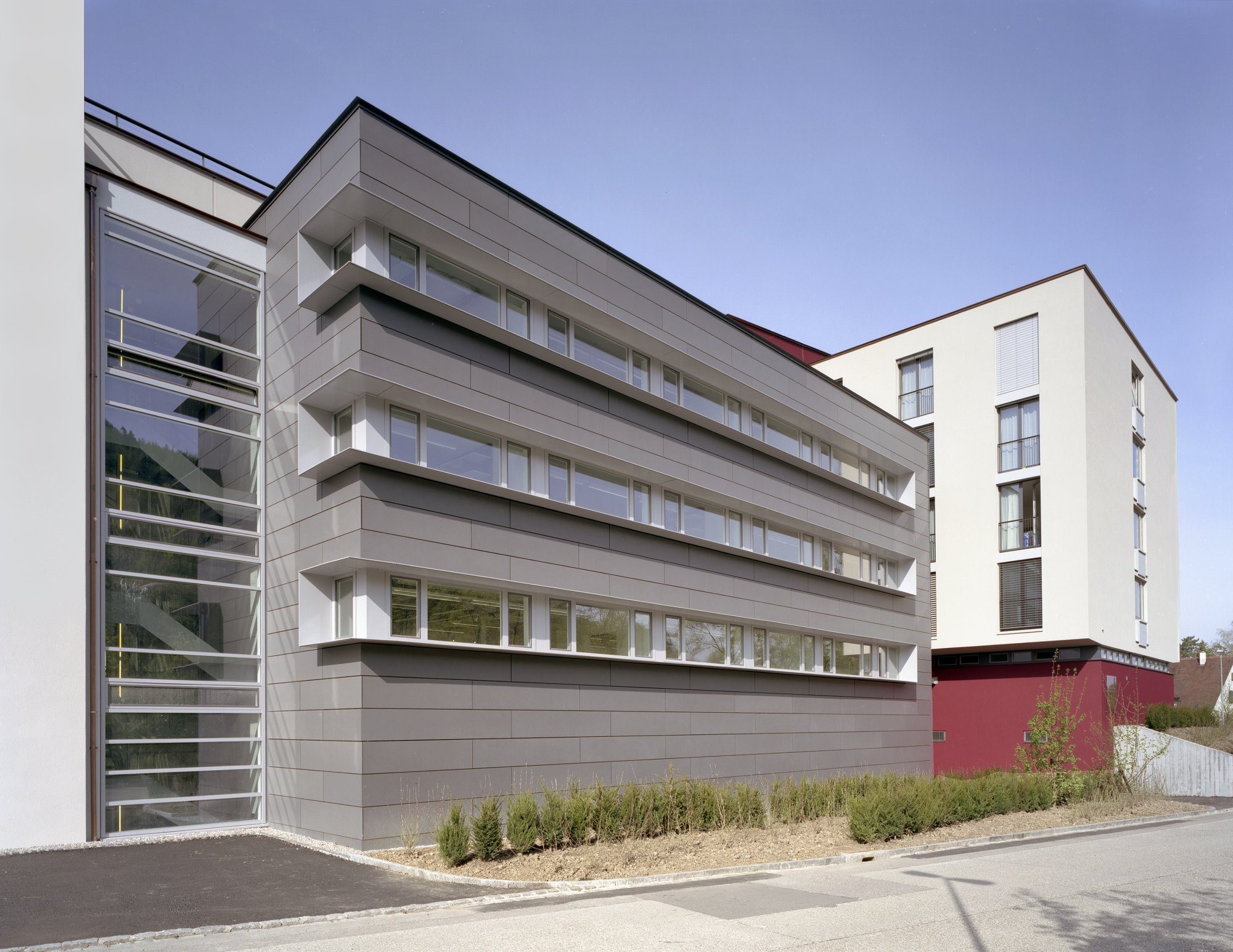 Der bestehende Gebäudeteil aus den 50er Jahren wird entsprechend umgebaut, im Nordwesten wird ein Neubauteil angefügt. Zur Sicherstellung der Rettungswege wird im Süden ein neues Fluchttreppenhaus angefügt.